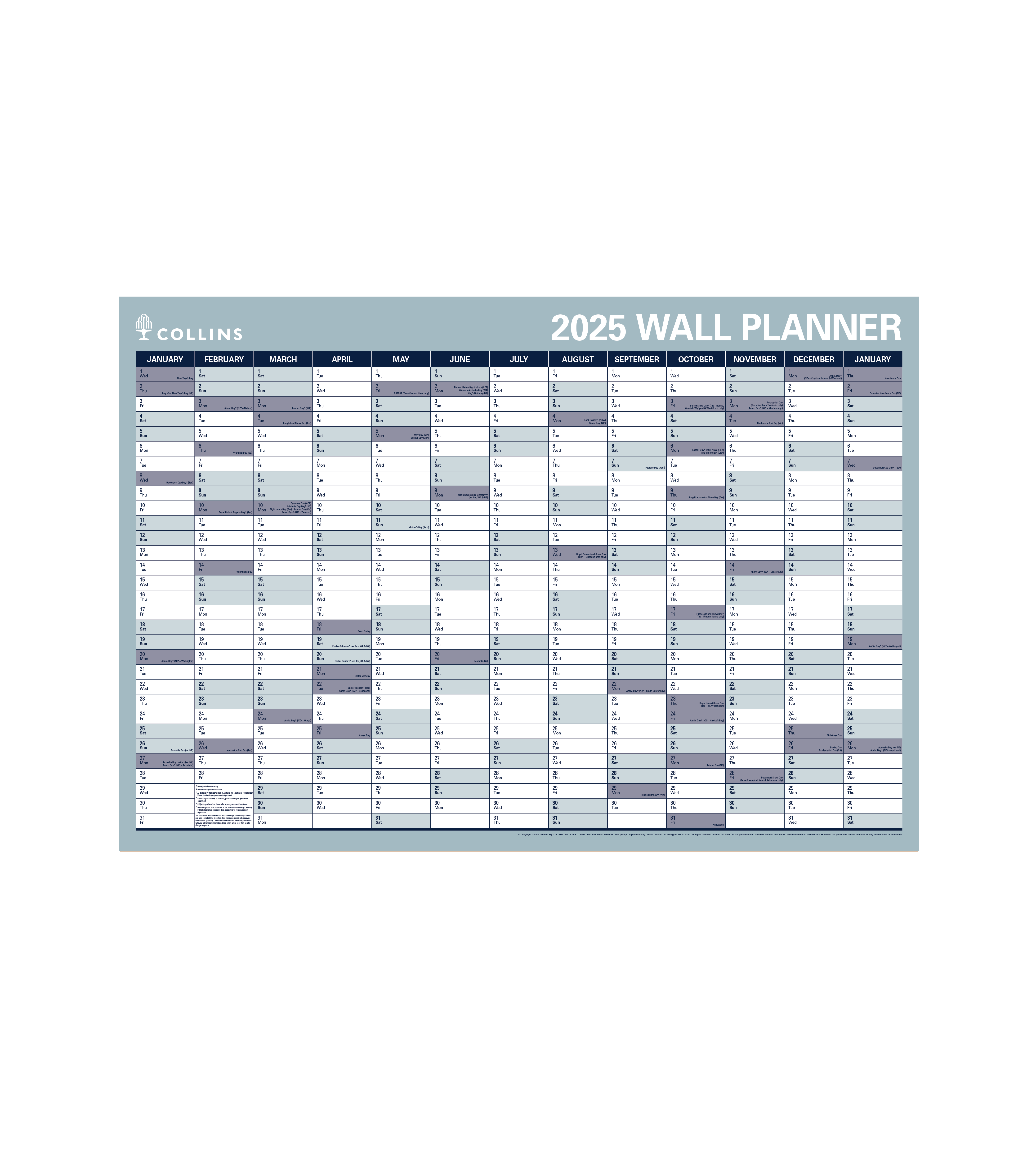 Collins Wall Planners & Calendars 2025 Laminated Roll Up Year