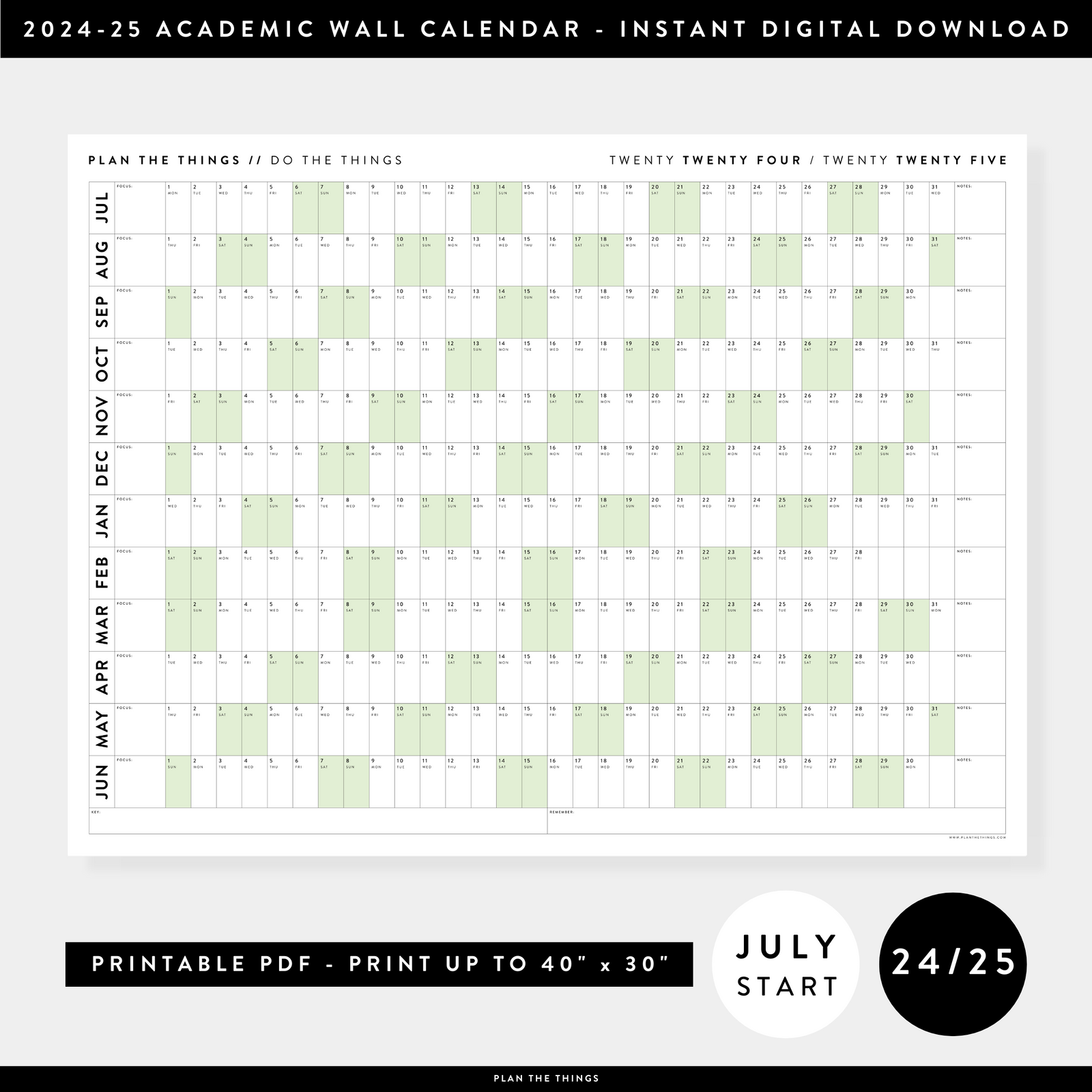 PRINTABLE 2025 2025 ACADEMIC CALENDARS (JULY START) // INSTANT